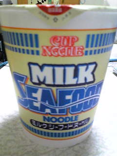 友人に教えてもらって興味が湧いたので買ってみました。ミルクシーフード味。3分たって開けてみたら表面が異様にネバネバしてまして…えっ私何か間違いましたか!みたいなね。びっくりでした。味のほうは…確かにちょっと乳臭い(もっと言い方ないんか)ですが、バターが強い感じでした。個人的にはきのこバター醤油味のが好みです。ってカップラーメンほとんど食べないんですけど^^;